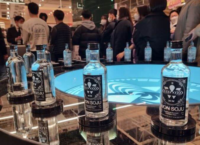 원소주는 100% 국내산 쌀을 사용하고 첨가물을 전혀 사용하지 않은 프리미엄 증류식 소주로 감압증류 방식을 통해 깨끗하고 부드러운 맛이 특징이라고 합니다. 지난 2월 25일 여의도 더현대서울에 첫 선을 보인 후 일주일 만에 초도 물량인 2만 병을 완판 하는 기록을 세우기도 했는데요.